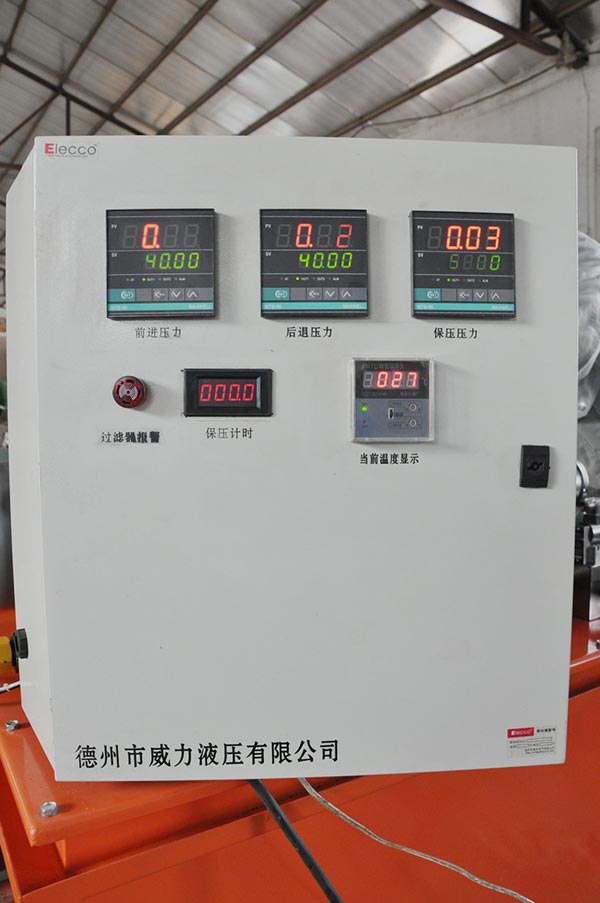 系統的電控部分,可顯示系統當前壓力,液壓油當前溫度以及保壓計時
